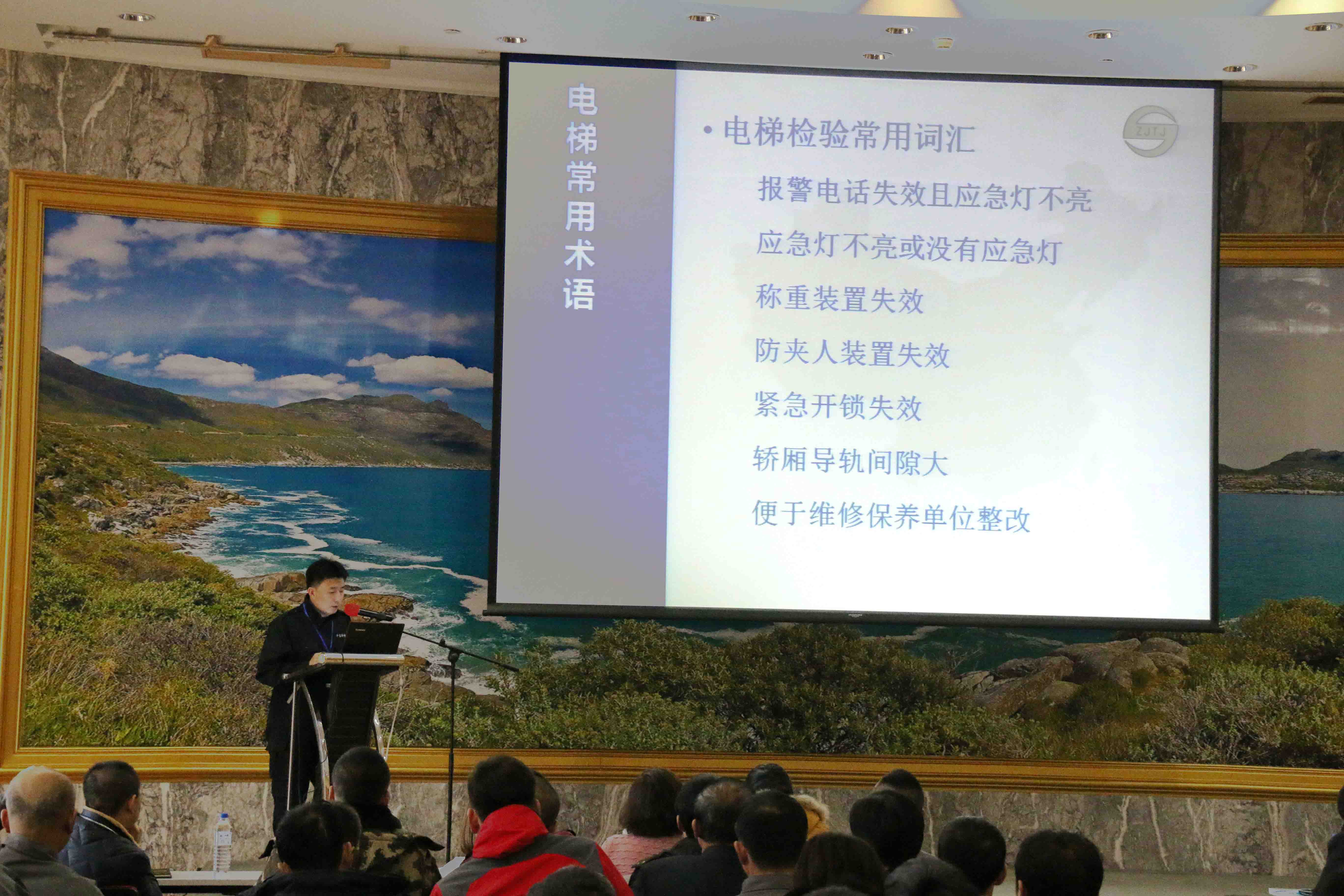 我們也許經(jīng)常乘電梯,可是對電梯的常用術語又了解多少呢?維修人員是否能夠正確使用常用術語呢?“電梯,停止運行”,“電梯,保養(yǎng)中”究竟有什么不同?首先,王勇老師從電梯的常用術語入手,展開了此次培訓會。