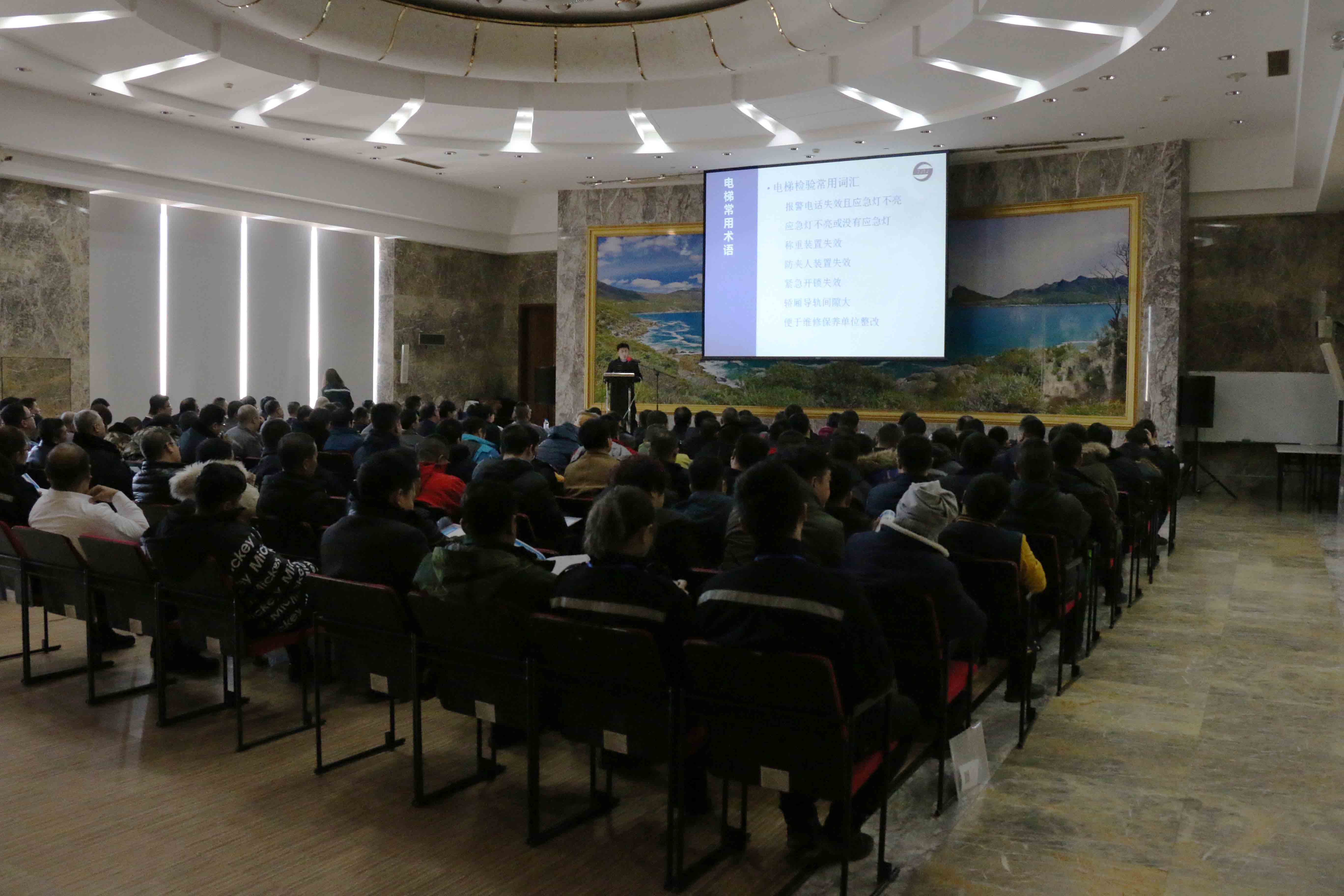 接著,王勇老師重點針對“電梯結構”、“電梯故障”、“電梯維修保養(yǎng)”以及“安全乘梯”等方面進行了全面、細致的講解。現(xiàn)場參與培訓的人員都在認真聽課、認真記錄。