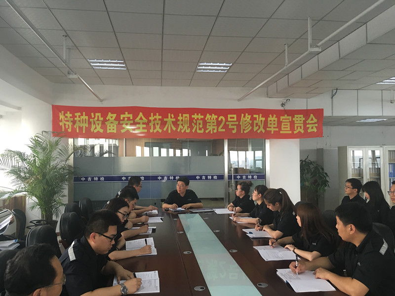 6月26日,中吉特檢組織相關(guān)人員召開(kāi)《特種設(shè)備安全技術(shù)規(guī)范》第2號(hào)修改單宣貫會(huì),對(duì)質(zhì)檢總局特種設(shè)備局發(fā)布的《電梯監(jiān)督檢驗(yàn)和定期檢驗(yàn)規(guī)則—曳引與強(qiáng)制驅(qū)動(dòng)電梯》、《電梯監(jiān)督檢驗(yàn)和定期檢驗(yàn)規(guī)則——自動(dòng)扶梯與自動(dòng)人行道》等6個(gè)特種設(shè)備安全技術(shù)規(guī)范第2號(hào)修改單,進(jìn)行了宣貫學(xué)習(xí)。